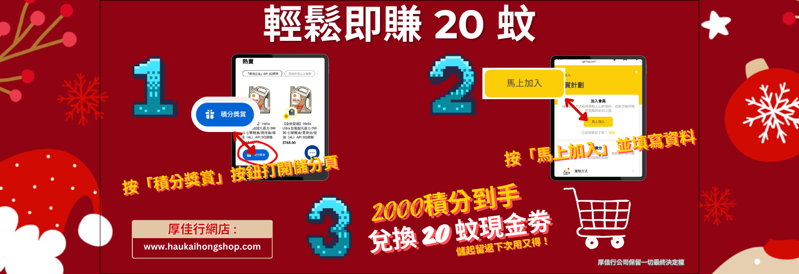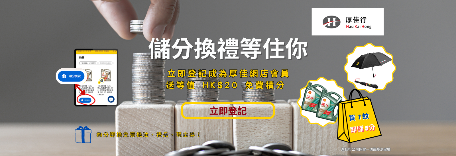 立即登記成為厚佳網店儲分計劃會員,賺取各種即時優惠。